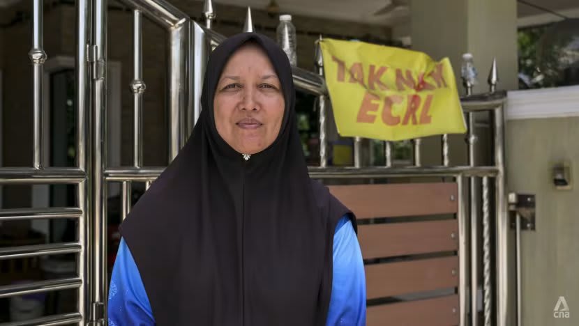 "Saya merasa sedih dan kecewa," ujar ibu rumah tangga ini kepada CNA di depan pintu gerbang rumahnya yang bertuliskan "tidak untuk ECRL".