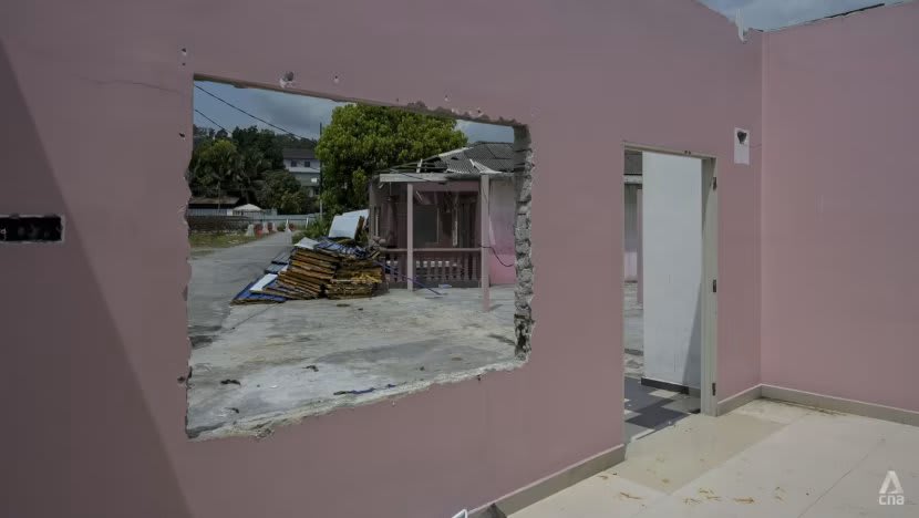 CNA juga mengunjungi rumah lain di desa tersebut yang terkena dampak banjir. Kertas dinding di beberapa ruangan telah terkelupas parah, sementara kaki-kaki perabotan kayu yang rusak telah dipotong untuk menyelamatkan apa yang tersisa.