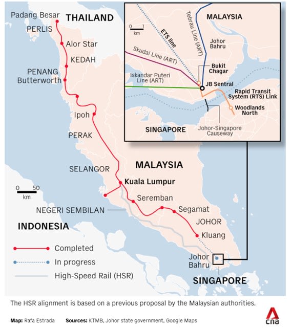 Namun, para analis yang diwawancarai CNA menekankan bahwa ETS merupakan alternatif yang jauh lebih buruk daripada HSR, menunjukkan bagaimana HSR tidak menghubungkan Kuala Lumpur dengan pusat ekonomi regional utama, Singapura, secara langsung.