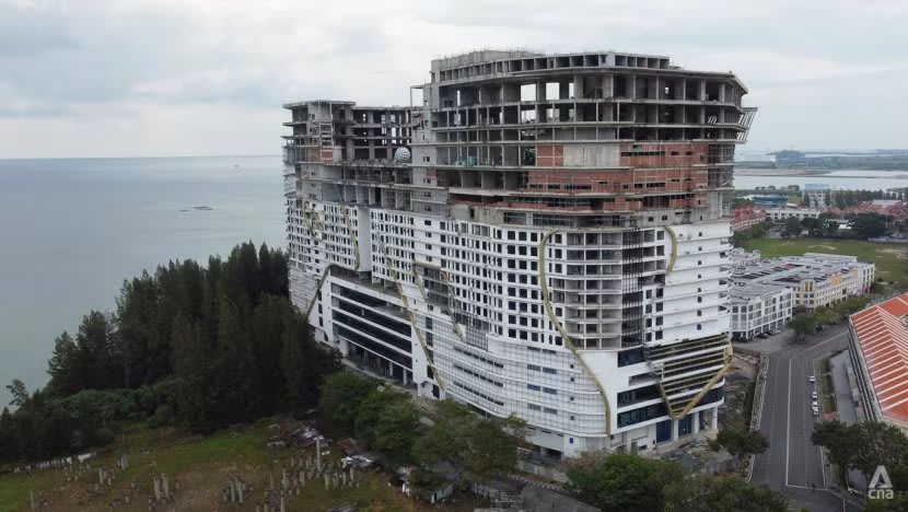 Proyek Melaka Gateway yang mangkrak ini dibangun di atas lahan reklamasi di sepanjang Selat Malaka. (Foto: CNA/Zamzahuri Abas)