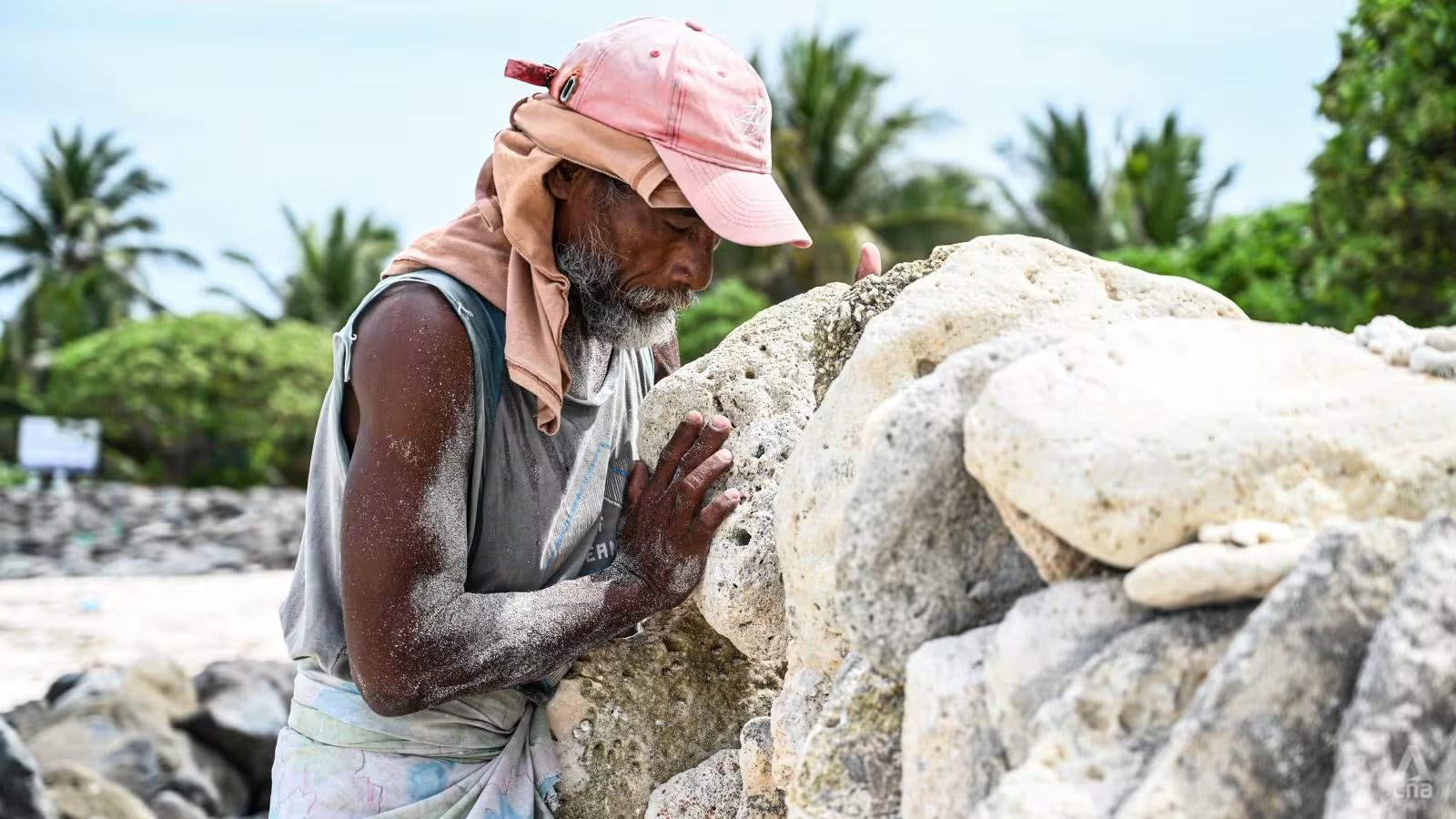 Tidak jauh dari bandara internasional Tarawa, seorang lelaki bekerja sendirian di bawah terik sinar matahari sore.