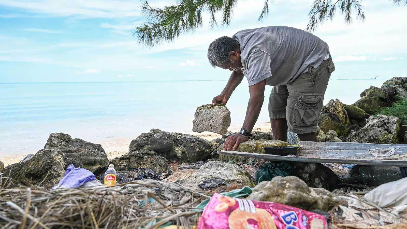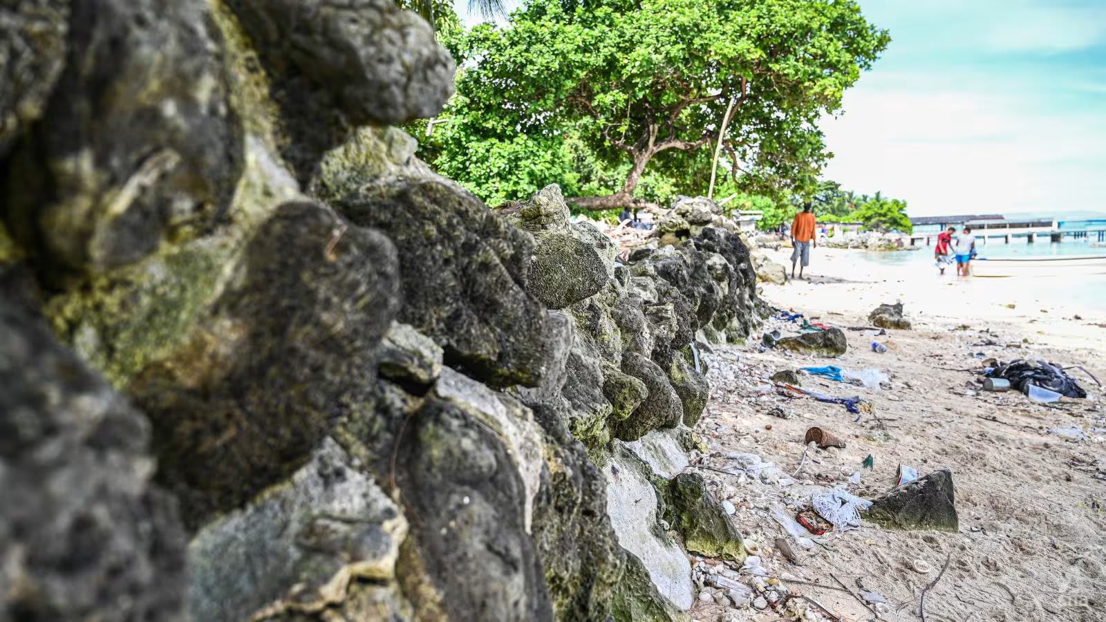 Di sisi lain pulau tersebut, warga lainnya, Tiaon Kaumai, mau tidak mau harus rela mengurus tanggul laut demi melindungi propertinya.