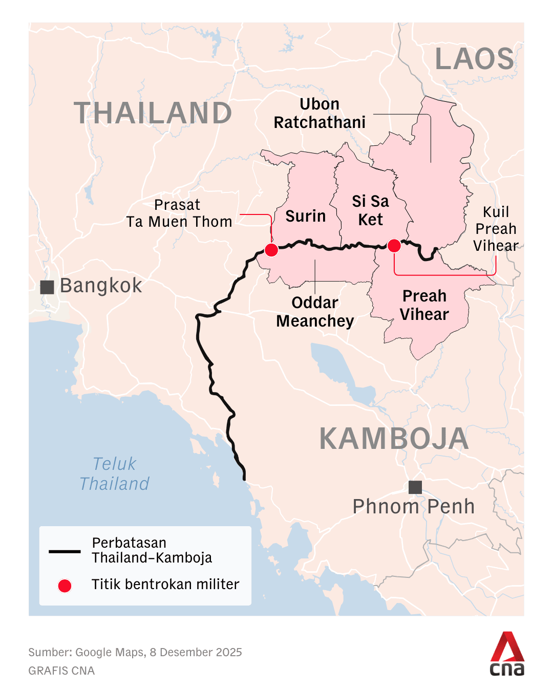 Pada bentrok 7 Desember lalu, sedikitnya enam warga Kamboja dan satu prajurit Thailand tewas. Kedua negara saling melempar tudingan sebagai penyebab bentrokan, yang mencakup serangan udara jet tempur Thailand serta laporan baku tembak di beberapa titik.