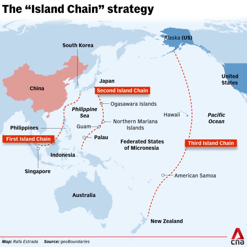 Menurut pengamat, strategi rantai pulau yang di masa Perang Dingin dianggap tidak terlalu penting, kini dapat mengubah pertaruhan di Laut China Selatan dan Selat Taiwan.