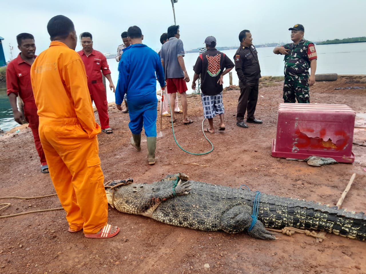 BATAM: Tim Terpadu Penanganan Bencana dan Evakuasi Buaya yang dikomandoi Pangkalan Utama TNI Angkatan Laut (Lantamal) IV berhasil mengevakuasi 34 ekor buaya yang lepas dari penangkaran di Pulau Bulan.