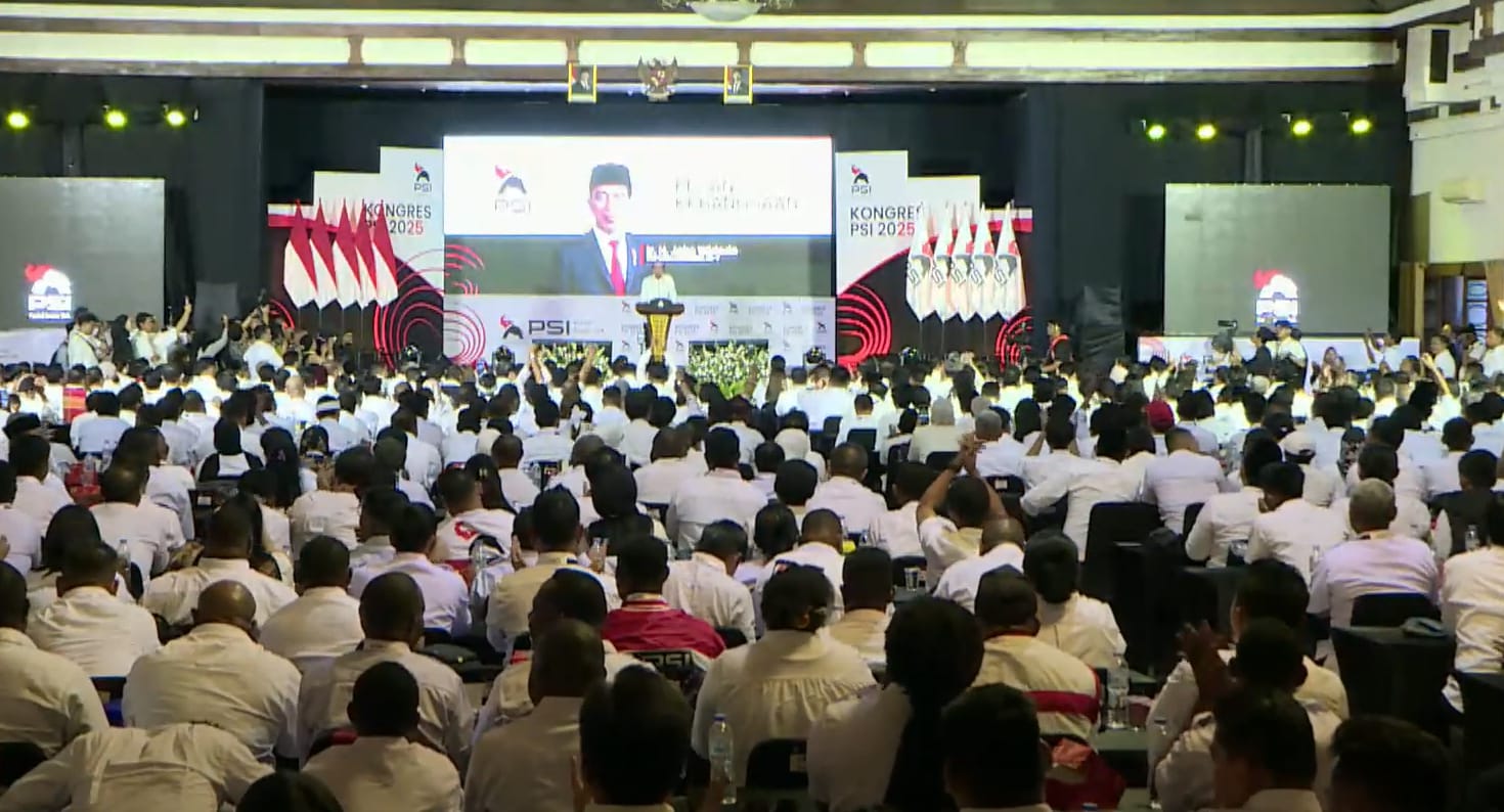 Mantan Presiden Joko Widodo menyatakan dukungannya kepada Partai Solidaritas Indonesia (PSI) pada Kongres PSI di Solo, 19 Juli 2025. (Youtube/PSI)