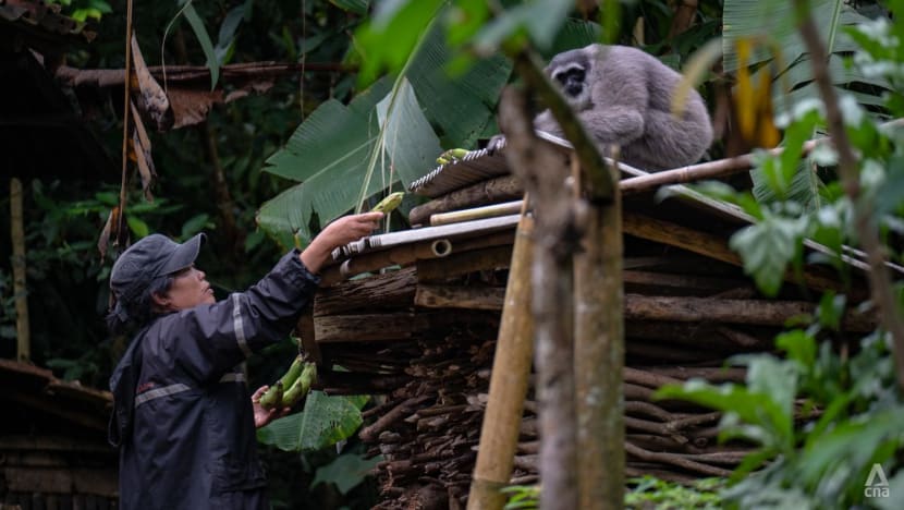 Di tengah keterbatasan penglihatannya, Tini menempuh jalan setapak yang licin dan berlumpur di hutan dekat desanya di Sukabumi, Jawa Barat, membawa tongkat dan tas berisi pisang matang untuk memberi makan keluarga owa Jawa.