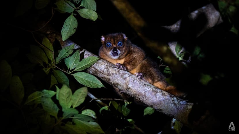 Kuskus mata-biru adalah mamalia berkantung yang aktif pada malam hari dan endemik di dua pulau vulkanik kecil di Provinsi Maluku Utara, Indonesia. (Foto: CNA/Wisnu Agung Prasetyo)