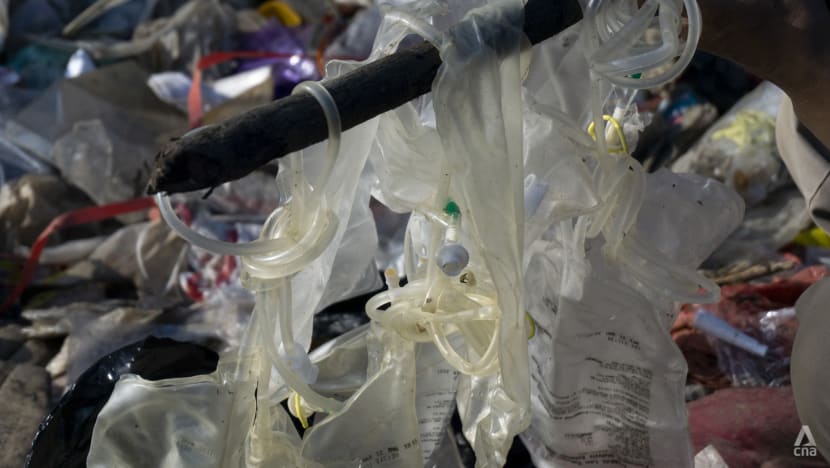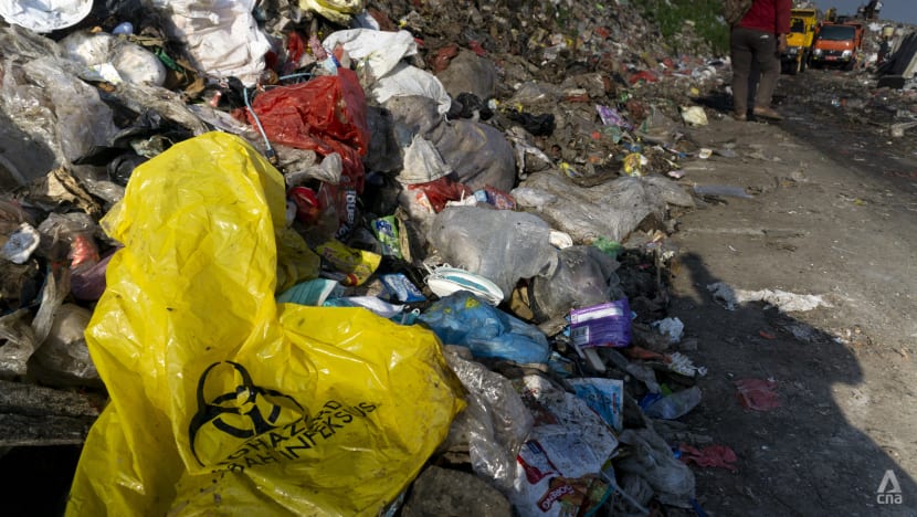 “Ini cuma puncak gunung es. Di dalam sana ada lebih banyak lagi limbah medis, tertimbun oleh berlapis-lapis sampah biasa,” kata aktivis Bagong Suyoto kepada CNA.