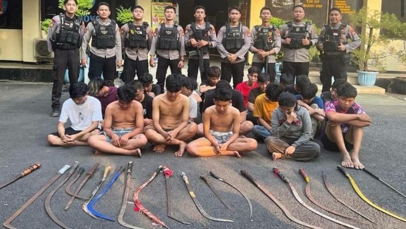 Kepolisian telah mengamankan 22 orang itu bersama 18 bilah senjata tajam berbentuk celurit panjang.