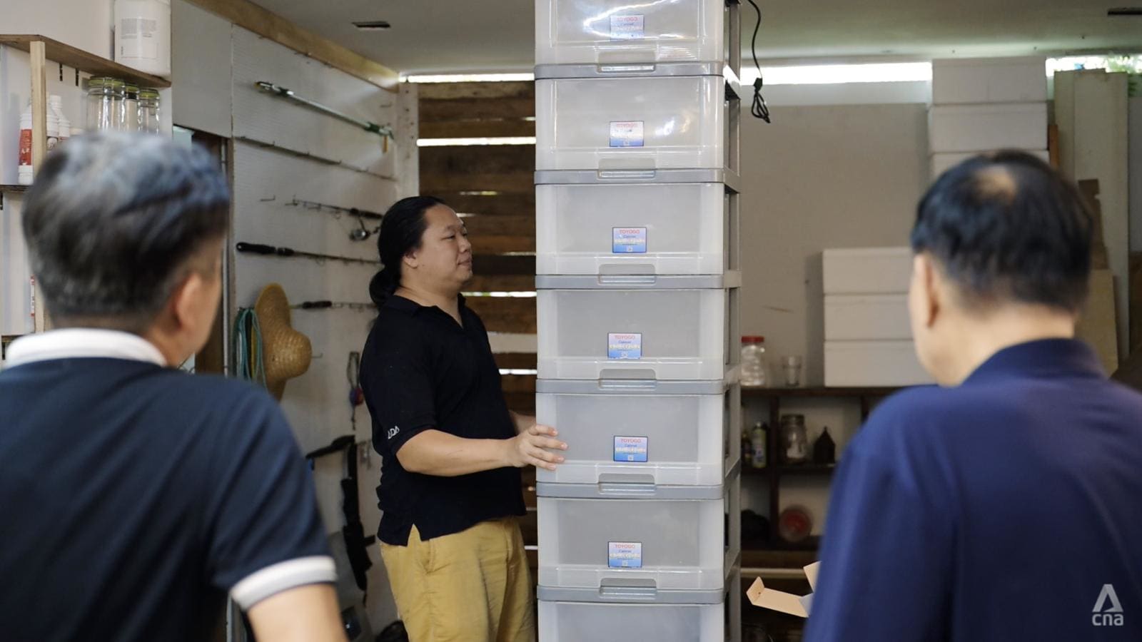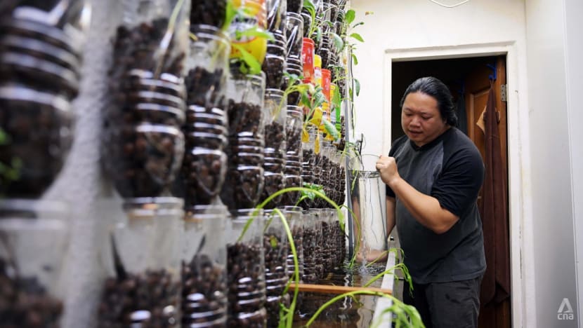 Petani urban Singapura Shannon Lim mengadakan kursus beternak kepiting di laci susun plastik yang telah dimodifikasi.
