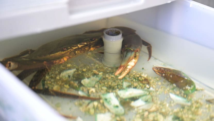 Saat ini dia memelihara sekitar 200 kepiting pelanggan di Pasir Ris dan pertanian rumahannya di Simei.