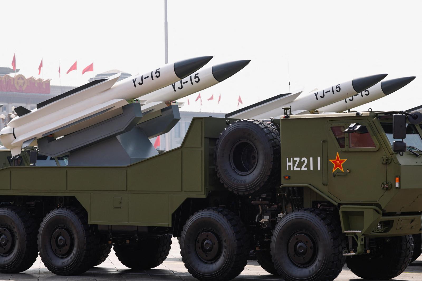China menampilkan lima jenis rudal nuklir: DF-5C, DF-31BJ, dan DF-61 Rudal Balistik Antar-Benua (ICBM) berbasis darat; JL-1 Rudal Balistik Udara (ALBM); serta JL-3 Rudal Balistik Kapal Selam (SLBM). Dari semua itu, hanya JL-3 yang pernah diperlihatkan sebelumnya dalam parade militer China, selain versi terdahulu dari DF-5 dan DF-31.
