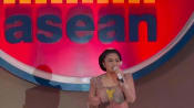 Ia juga tampak memakai jaket kontingen Indonesia sambil mempraktikkan gerakan wushu dengan senjata kipas—jurus yang akan ia tampilkan di kompetisi nanti.