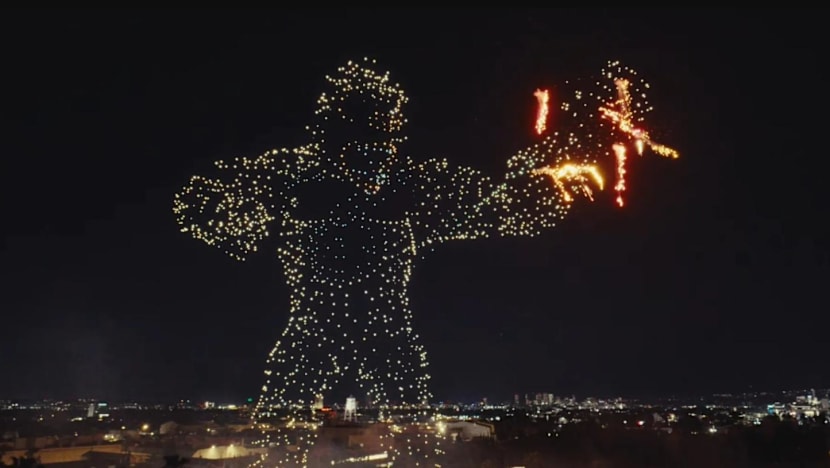 Apple TV menggelar pertunjukan berdurasi 12 menit menggunakan 3.000 drone untuk mempromosikan musim kedua serial Monarch: Legacy of Monsters. (Foto: Dok. Apple TV)