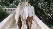 Dalam foto yang dibagikan, Angga tampil mengenakan pakaian akad berwarna putih dengan sentuhan adat, sementara Shenina tampak anggun dalam kebaya putih dengan hiasan kepala dan veil panjang.