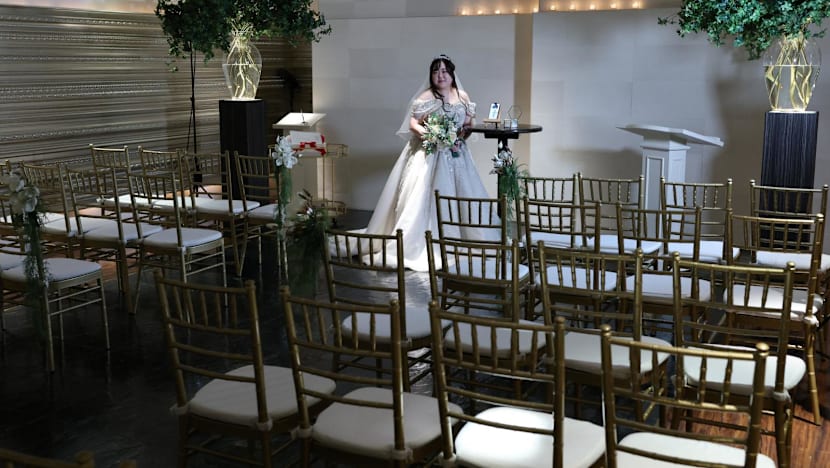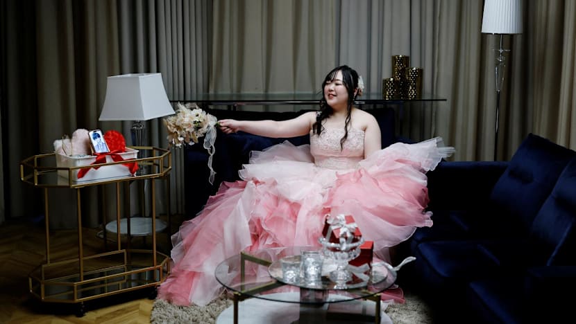 Musik romantis mengalun di sebuah aula pernikahan di Okayama, wilayah barat Jepang, pada akhir Oktober lalu. Yurina Noguchi tampil anggun mengenakan gaun putih dan tiara. Beberapa kali ia menyeka air mata haru, tersentuh oleh kata-kata calon suaminya yang terdengar dari layar ponsel pintar di hadapannya.