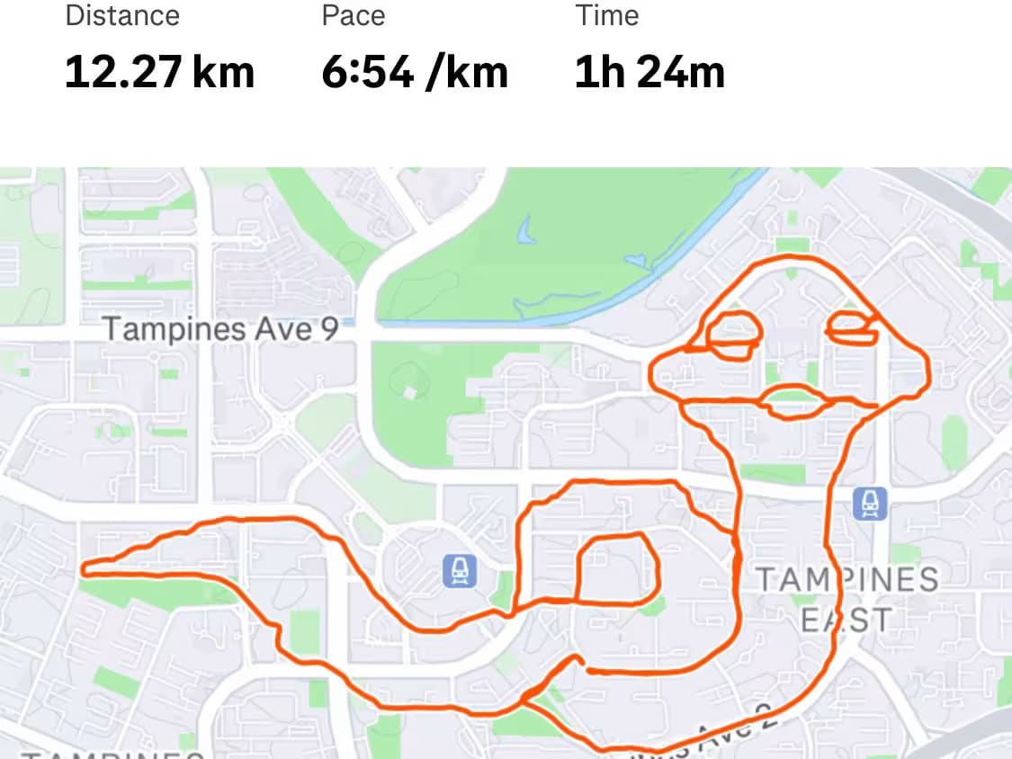 Ular hingga Ratu Elizabeth: 'Seniman Strava' menggambar dengan rute lari, jalanan Singapura menjadi kanvasnya