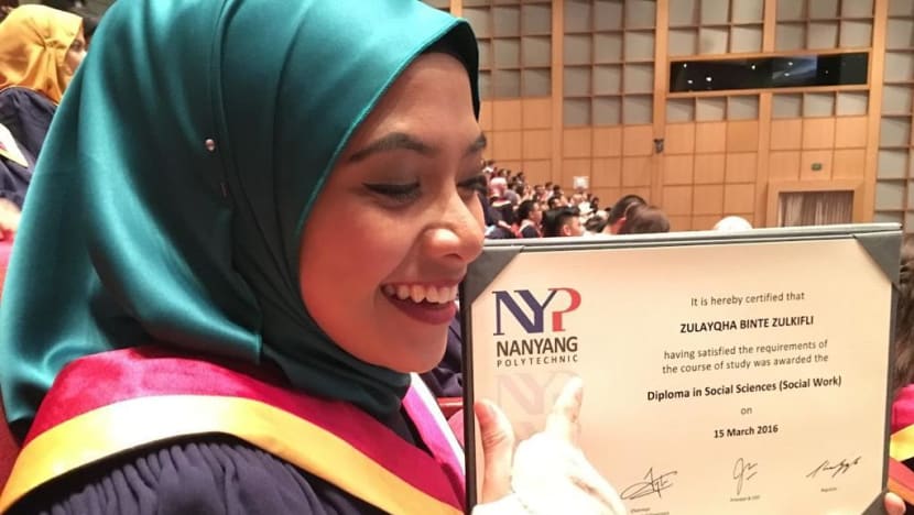 Pada 2019, Zulayqha menyelesaikan kuliahnya pada jurusan pekerjaan sosial di Universitas Ilmu Sosial Singapura. Didorong tekad kuat untuk membantu keluarga dengan masalah yang sama seperti dirinya, Zulayqha memutuskan menjadi pekerja sosial di Pusat Layanan Keluarga milik Yayasan Rotary Clubs Singapura.